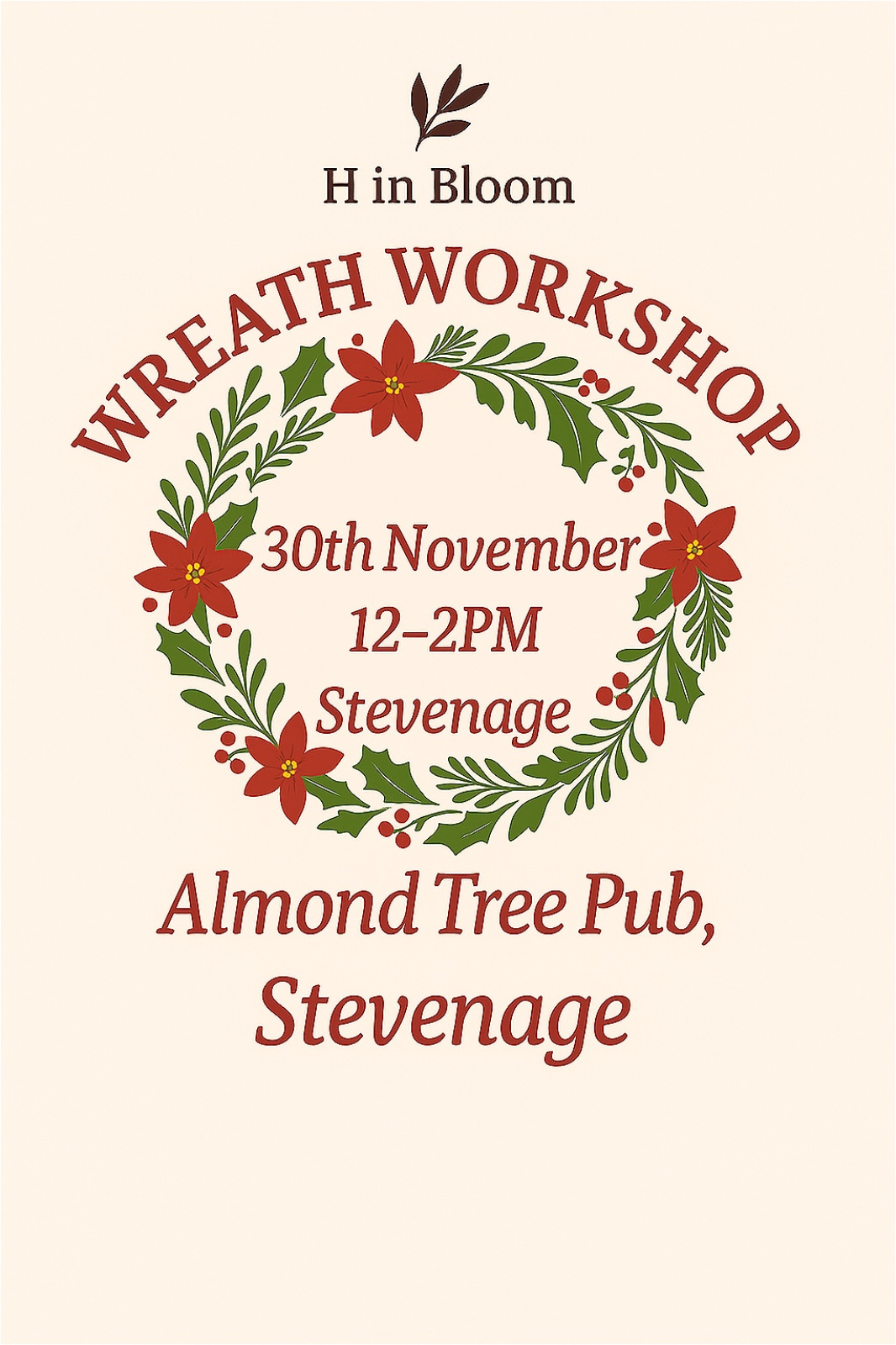 Kick off the festive season in style with a creative wreath-making workshop at the Almond Tree pub, Stevenage. This welcoming afternoon will be filled with festive spirit, gorgeous foliage, and the chance to design a truly personal Christmas wreath. Enjoy a calm, creative space before the December rush begins, and take home something handmade and full of Christmas magic.